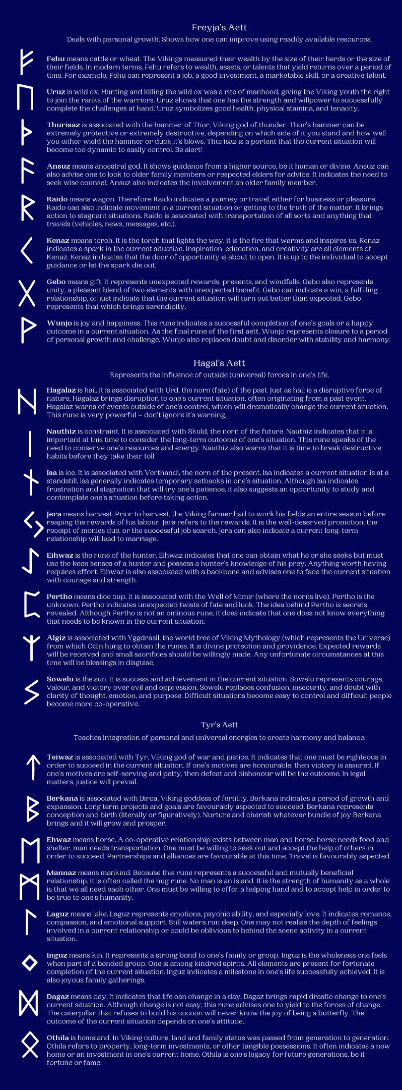 The Elder Futhark is divided into three groups of eight, called Aetts.